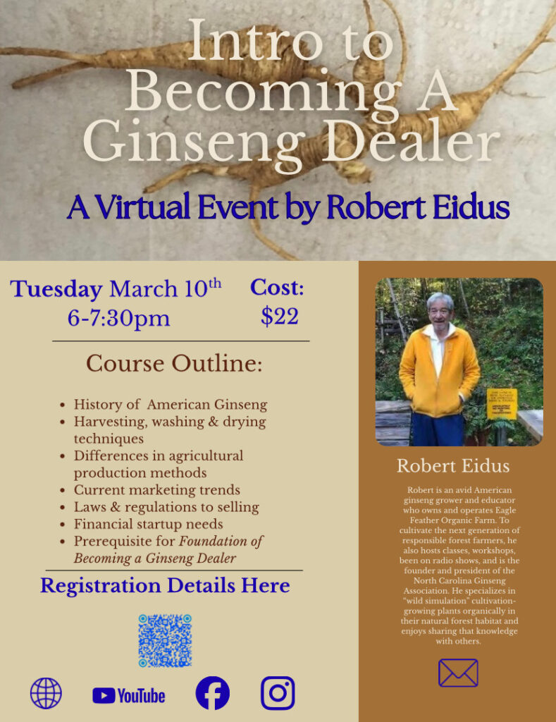 Presented by North Carolina Ginseng Association on Tuesday, March 10, 2026 from 6–7:30 p.m.